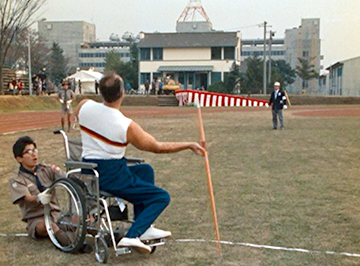 さらに、記録映画のナレーションでは、中村裕博士が実施した外国人選手の実態調査の調査結果の要点と、各競技の概要や種目別区分(障がい別)の紹介、日本人選手と外国人選手の社会環境の差異の分析などが紹介されています。